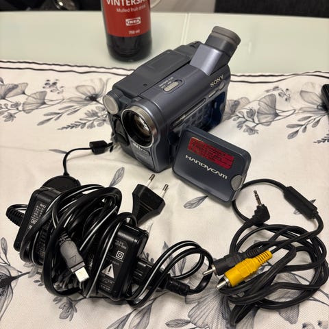 Sony Handycam CCD-TRV11E PAL videokamera med 12ggr digital zoom, 2,5 tum LCD vikbar färgskärm, handrem. Färg: silver. Batteri, batteriladdare, sladd 220v för laddning/drift. Nyskick, väldigt lite använd. Pris 1 390 kr eller seriöst bud.