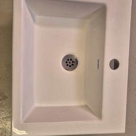 Nytt i kartong, Camargue El Hierro tvättställ med måtten 335x295 mm i vit färg. Tillverkat av keramiskt material. Passar för badrum och tvättställsinstallationer. Köpt på Bauhaus.