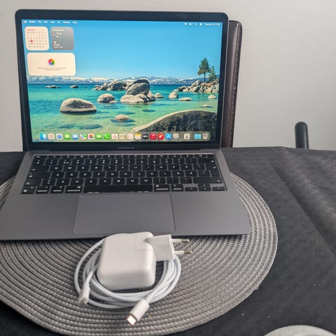 Apple MacBook Pro laptop i färgen grå. En bärbar dator med bakgrundsbelyst tangentbord och högupplöst skärm. Batteriets hälsa är 93% med en cykelantal på 136. Serienummer och modellinformation finns tillgänglig.