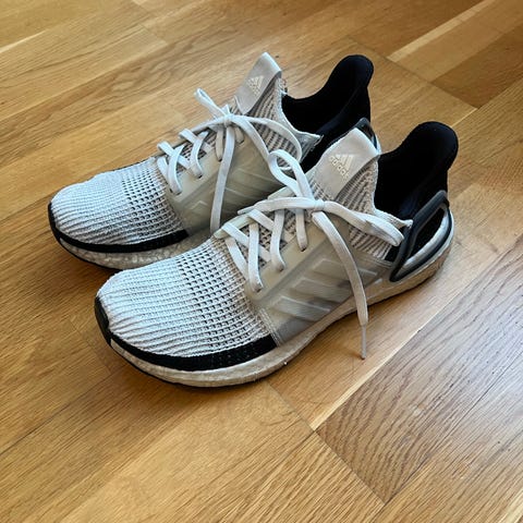 Helt nya Adidas Ultraboost S.RDY W i storlek 37 1/3 med vit och rosa färg. Aldrig använda pga för små för mig. Jag har oftast storlek 38 i skor, kan ibland ha 37 beroende på sko och märke. Dessa skulle jag säga är något små men kanske töjer ut sig efter några användningar. Nypris 1799. Mitt pris: 990 kr.