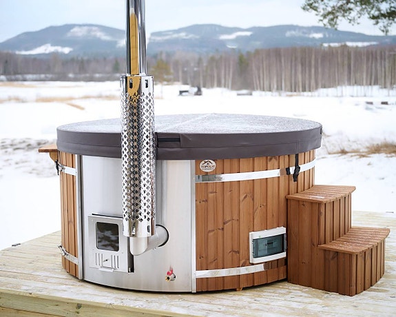 Vedeldad badtunna med integrerad kamin. fri frakt