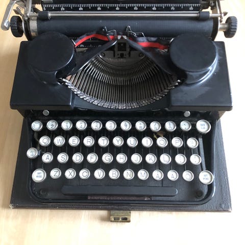 Antik skrivmaskin. Vet ej om den fungerar i nuläget, men är fin som inredningsdetalj.