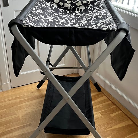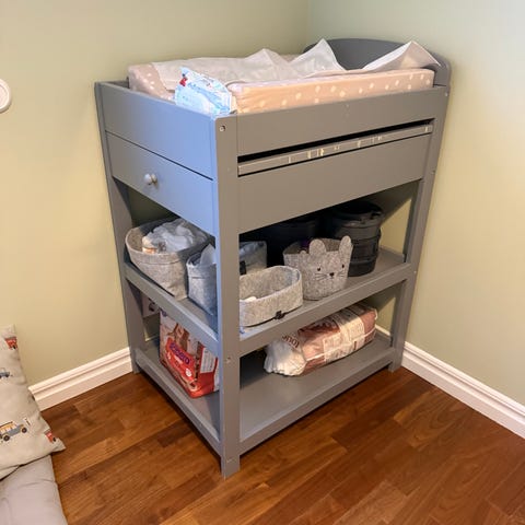 Väggmonterat skötbord. Framstår med repor och saknar en vit list i ene sidan, som det syns på bilderna.