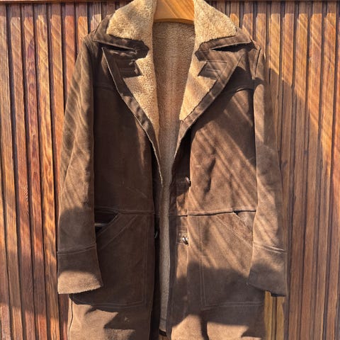 Vintage Hollies Shearlingjacka Brun Läder med Äkta Fårskinn innsfoder
