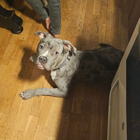 Hej! Detta är Bosse, han är 6 månader Okastrerad American Bully. Han funkar inte med våran andra hund hemma. Bosse vaktar mat o ben. Funkar ihop med små barn, han inte är 100% rumsren men det blir bättre och bättre! Hur snäll som helst i övrigt!