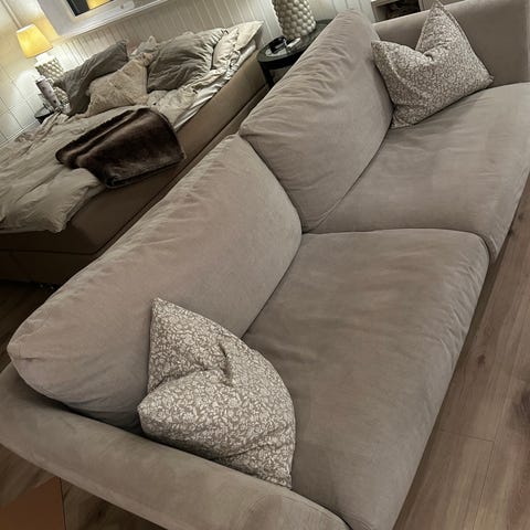 Säljer vår 3-sits soffa från Mio av modellen Madison Lux. Beige färg. Tyget på dynerna är tvättbara