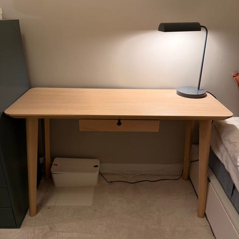 Skrivbord från IKEAs samarbete med Ilse Crawford. Skador i korken på två hörn, ena på undersidan, den andra på kanten (se bilder). Inget som stör utseendet. I övrigt fint skick!