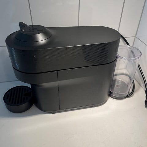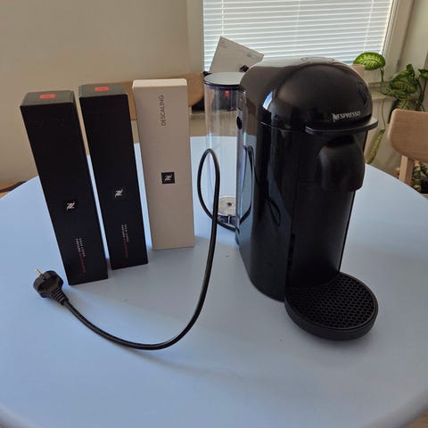 Nespresso Vertuo Pop + mjölkskummare (fungerar bra)