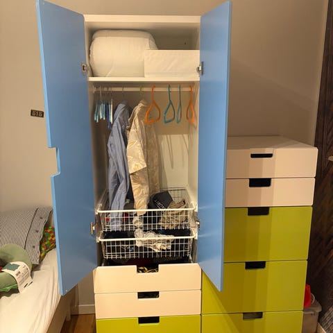 Garderob, vit/rosa med 4 lådor, 60x57x181