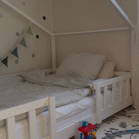 Sänghimmel från Hemtex och kantskydd från Garbo and friends kan säljas till om så önskas.