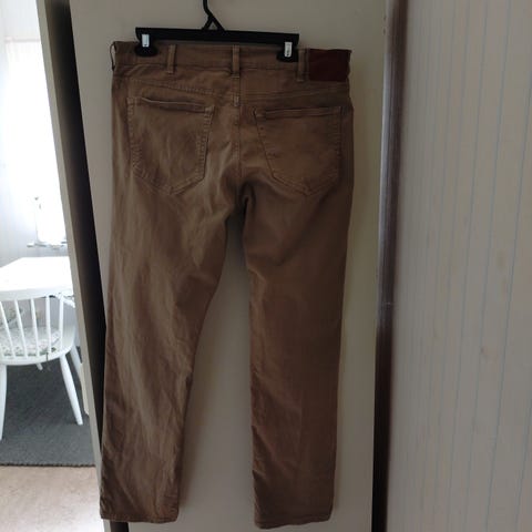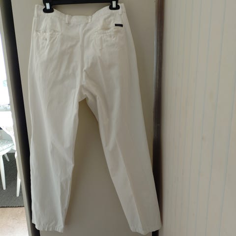 Byxorna har en klassisk design med fickor fram och bak. Perfekt för en avslappnad men ändå välklädd look. Observera att häktan i byxlinningen är skadad. Galge ingår ej. Nypris c:a 1000 kr .
