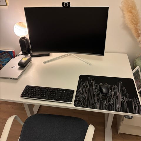Höj och sänkbart skrivbord, hurts, kontorsstol och skåp