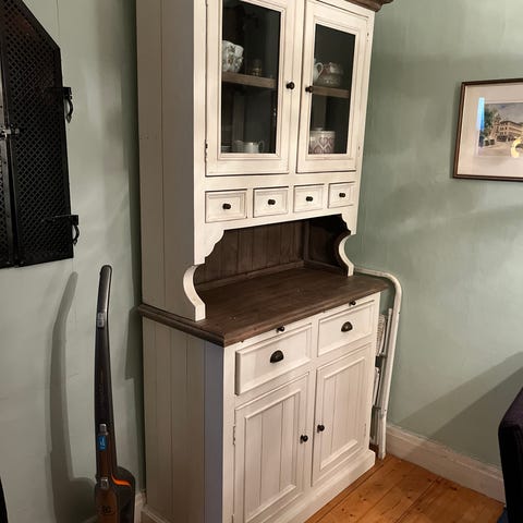 Säljer en fin skänk som stått i barnrummet. Lådorna ingår. Längd 159 cm , bredd/djup 40 cm, höjd 74 cm.