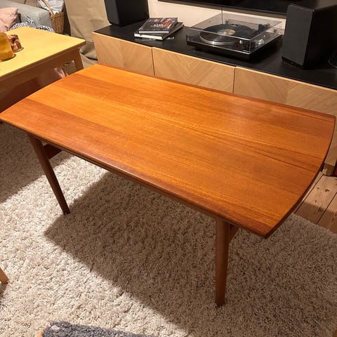 RUNT TEAK SOFFBORD NYSLIPAT, RETRO VINTAGE FUNKIS. KAN LEVERERAS/ SKICKAS