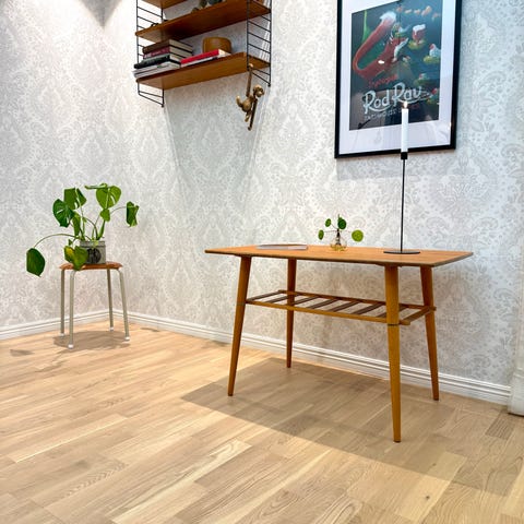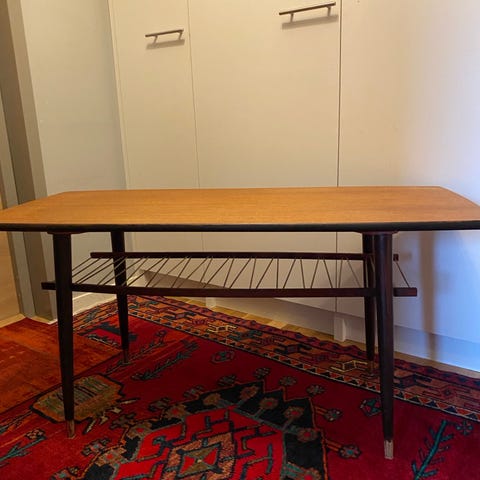 Stilrent runt soffbord med nyslipad toppskiva. Allt har blivit behandlat med rätt produkter. Ingeborgs man finner runda soffbord. Skicket är väldigt bra, se bilder. Troligtvis danskt.