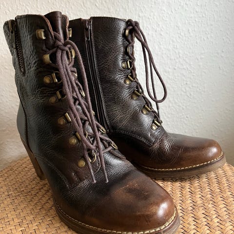 Ett par svarta stövlar i läder, storlek 37, skaft 38 cm, klack höjd 8 cm.
