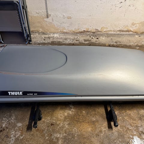 Thule takbox i svart färg. Takboxen är avsedd för montering på takräcke .