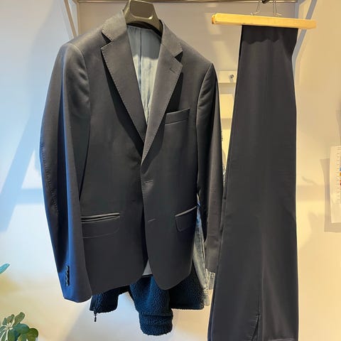 Fin Oscar Jacobson kostym, modell Edmund, storlek 46 i både kavaj och byxor. Färgen är ”Navy blue”, se bild för exakt färgkod. Bra skick!