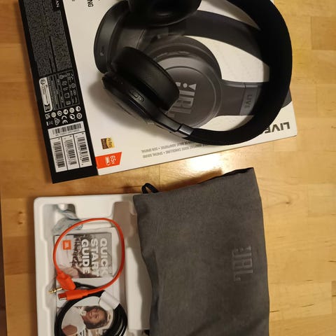 Trådlösa on-ear hörlurar. Lätta, bekväma och med bra batteritid. Knappar för bl.a. volym och bluetooth. App finns för ytterligare inställningar (men går lika bra att använda utan app). Inga synliga tecken på användning.
