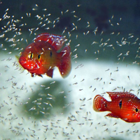Röd juwel cichlid yngel