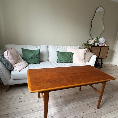 Tripp trapp trull teak bord i tre delar, kul möbel att använda ihop eller dela upp. Perfekta mindre sideboards. Här har alla tre toppskivor blivit nyslipade och behandlade med kvalité av olja. Skicket är väldigt bra, kan finnas något brukslitage men i mitt tyckte hur fina som helst. Se bilder.