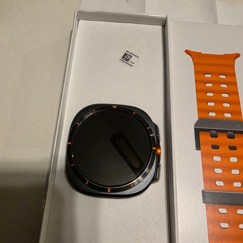 Samsung Galaxy Watch Ultra övriga mobiltillbehör. Produkten inkluderar en smartklocka med tillhörande laddningskabel och originalförpackning. Designad för användning med kompatibla mobila enheter.