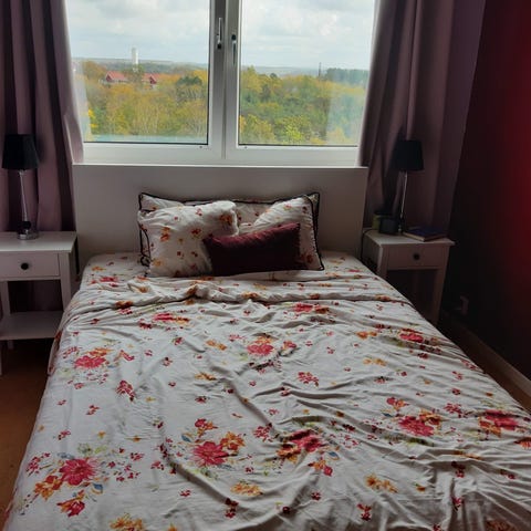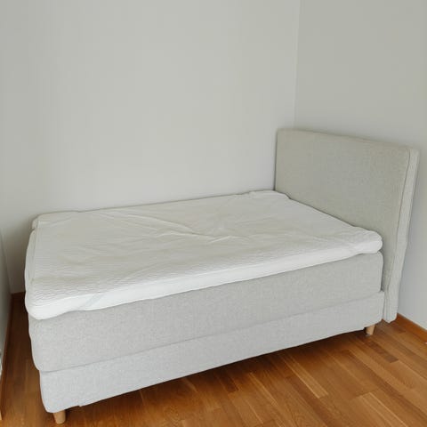 140 cm bred säng från ikea. Köpt 2009 och använd till 2013. Däreftee har den använts som gästsäng endast enstaka gånger.
