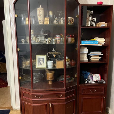 Säljer vitrinöverdelen på mitt fina vitrinskåp då jag tyvärr behöver bänkytan under
