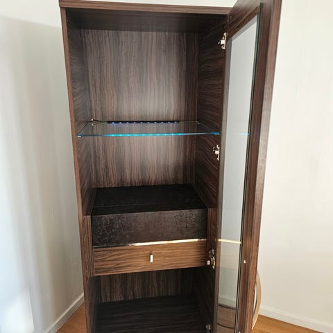 Fint vitt vitrinskåp - utan hyllplan, med belysning