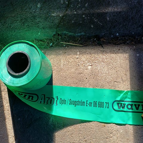 Olika markerings band för nät/internet och Avlopp. Röd och orange. Pris 300kr. för Avloppsband och 400kr för Orange nätmarkeringsband eller båda för 600kr.