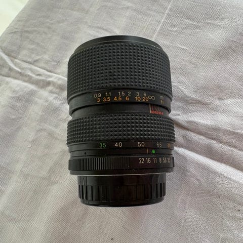En Pentax k1000 med 2 st objektiv ett fast 50 mm F1.7 och ett zoom objektiv 28-80 F3.5-4.5.