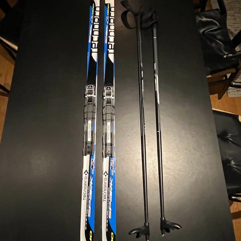 Madshus 140 cm Skidor med Alpina längdpjäxor 34 med stavar