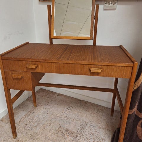 Sminkbord i teak och bok med spegel, Skandinavien 1950/60-tal