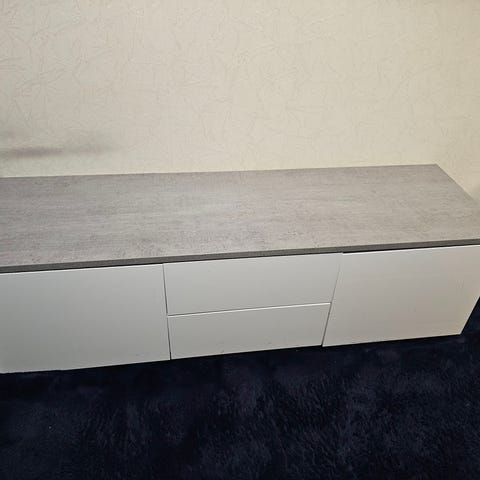 Säljer detta låga gråa skåp som använts som tv bänk.