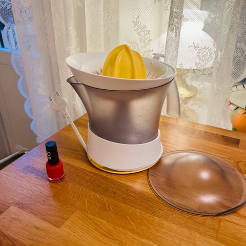 Smeg citruspress i rosa färg med kromade detaljer. Designad för att pressa citrusfrukter och tillverkad i metall och plastmaterial.