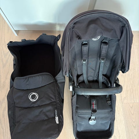Bugaboo donkey 2 sittdel i grått och rosa tyg. Sittdelen har säkerhetsbälte och avtagbar bygel för barnets säkerhet och komfort. Justerbara remmar och mjukt sittmaterial.