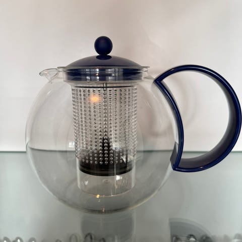 La Cafetiere tekanna tillverkad i glas och rostfritt stål med en kapacitet på cirka 1 liter.