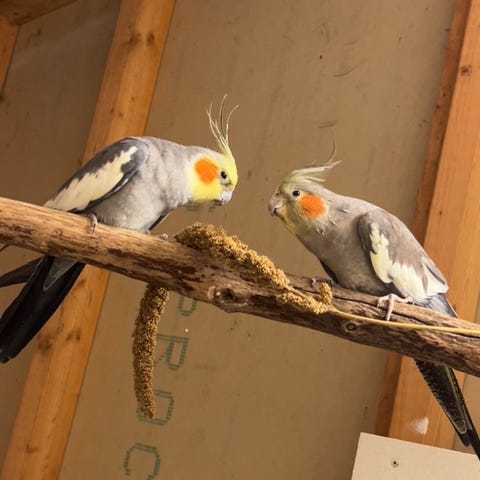 JAG HAR ETT PAR FINA PARAKITER SOM ÄR HELT FRISKA OCH AKTIVA.
