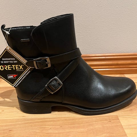 Clarks boots original storlek 37,5 i svart färg. Stövlarna är fodrade med ett mjukt material som ger värme och komfort. Yttermaterialet är i mocka eller liknande textur. Passar för användning under kallare väder.