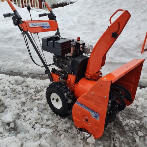 Snöslunga som startar direkt o går fint. Backväxel fungerar ej. Men den är så lätt o dra så det gör ingen skillnad. Bara slunga på. Elstart funkar fint