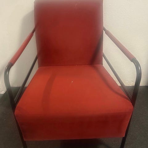 Orange fåtölj från Ikea.