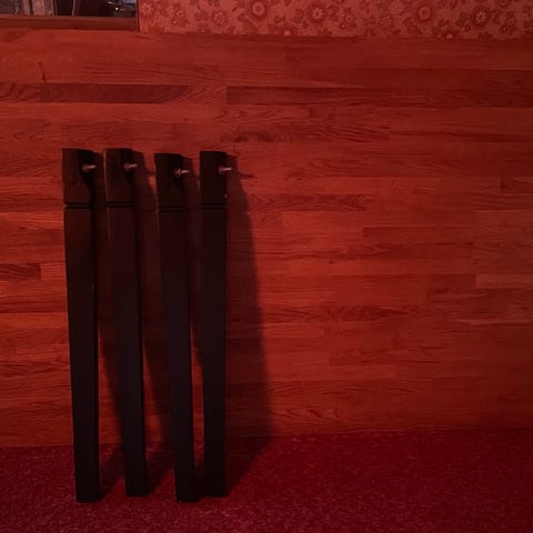 Är ett tungt bord så bra med bärhjälp. Ben går att montera av.