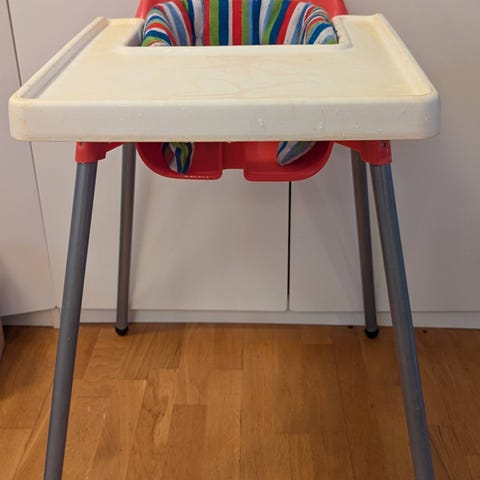 IKEA barnstol med grå sits och gult dyna