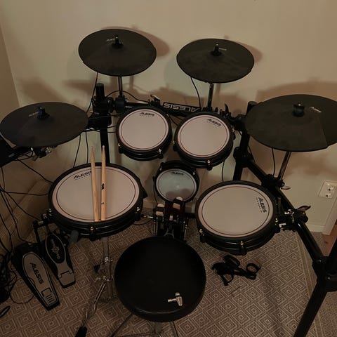 Säljer mitt Alesis elektroniska trumset i fint skick. Allt fungerar som det ska och har använts varsamt i hemmamiljö.