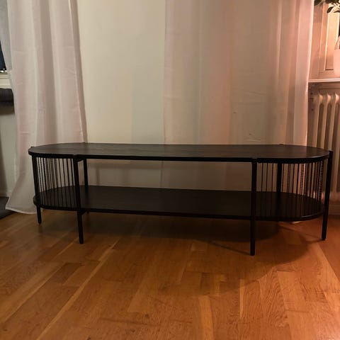 Fin TV-bänk i svart trä från Jysk i nyskick. Modellen heter Sneslev. Nypris 1599kr.