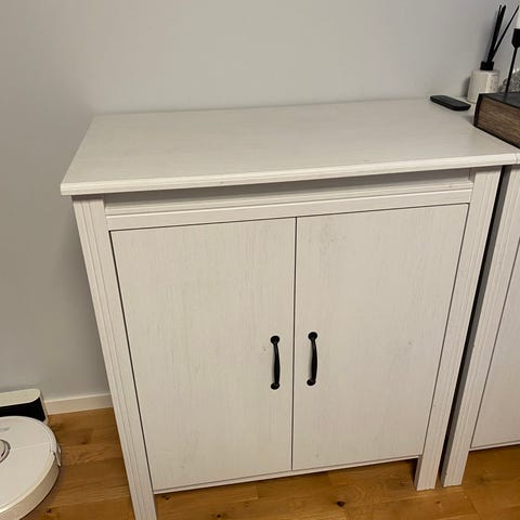 Vitt skåp med 2 luckor + 2 utdragslådor