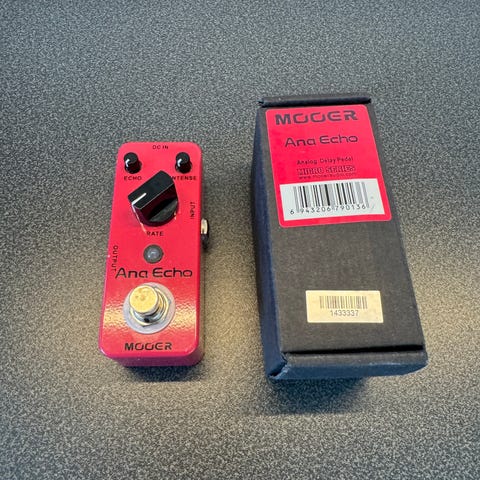 Mooer Ana Echo är ett gitarrtillbehör i röd färg. Produkten är utformad för att användas med gitarr och har en kompakt design med kontroller för ljudjustering.