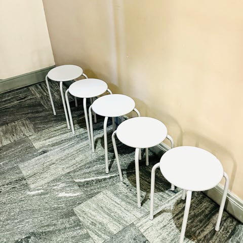 Litet bord med 4 plåtpallar