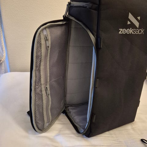 Ryggsäcken rymmer en laptop upp till 15" (MacBook) eller 14" PC samt en 10,1" surfplatta i separata, vadderade fickor. Huvudfacket har en säker lockstängning, och det finns praktiska fack för småsaker och vattenflaska.