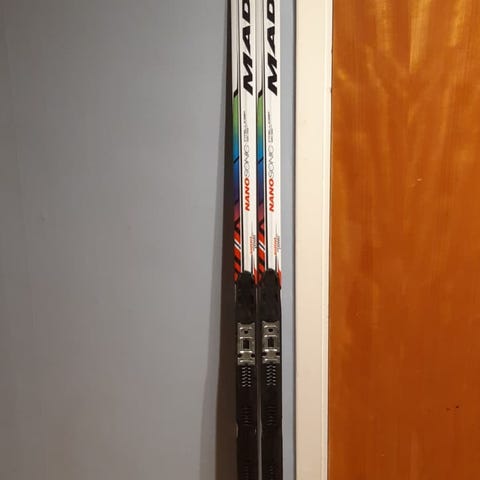 Tävlingsskidor m några år på nacken. Bra belag. Ny bindning.